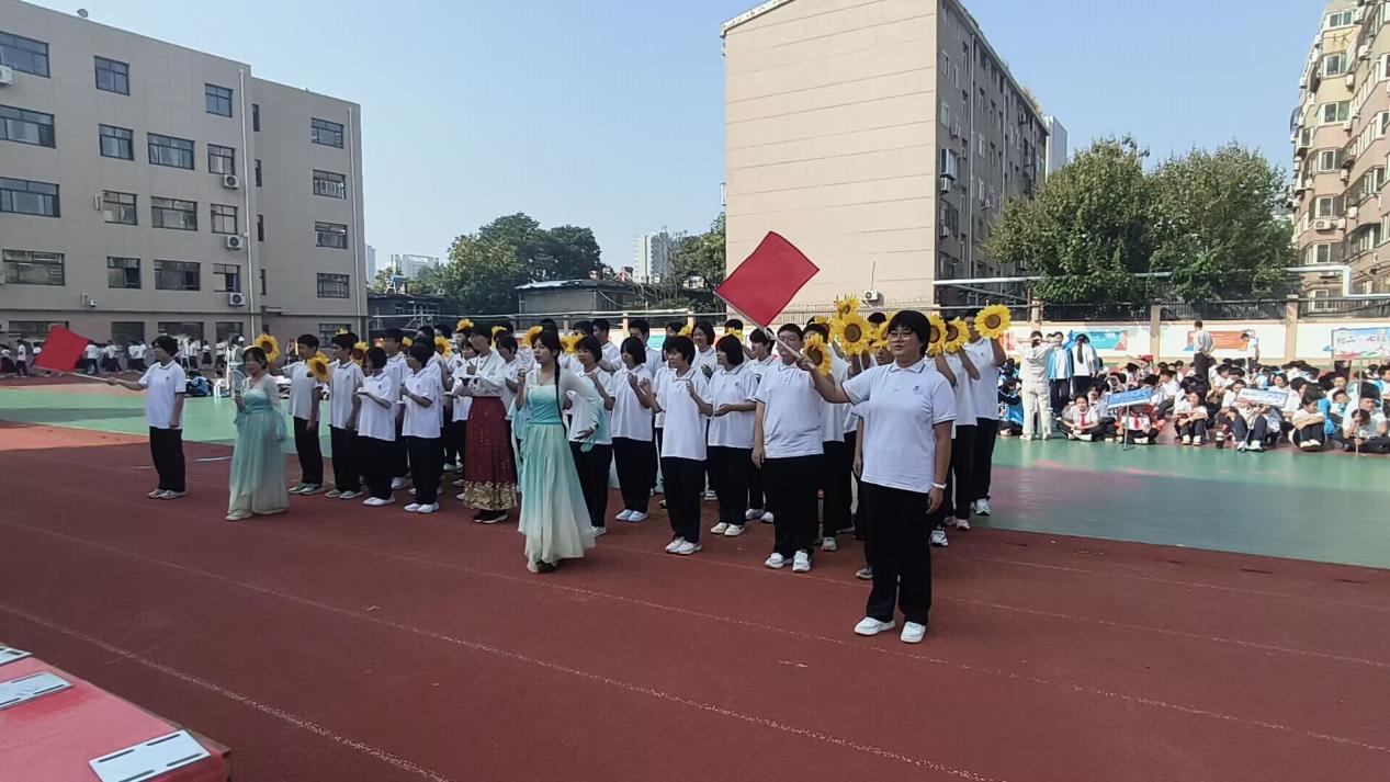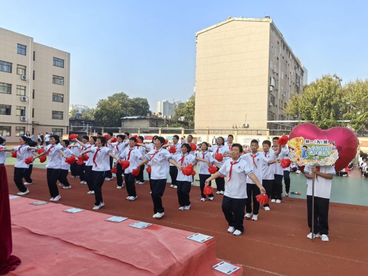 教职工方阵也不甘示弱,他们精神抖擞,步伐整齐。初二级部的八段锦和各处室的太极拳表演行云流水,令人叹为观止;初一级部的《让我们一起出发》和初三级部的《爱你》活力四射,尽展青春风采,共同谱写了运动华章。他们的展示不仅展现了教师的风采,更为学生们树立了榜样,激励着大家在运动场上奋勇拼搏。