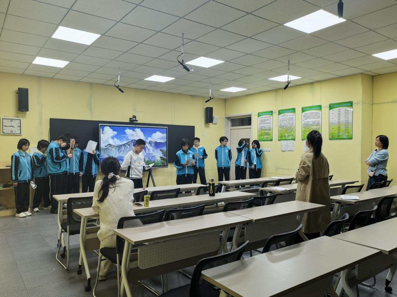 幕后花絮:精心筹备见实效 饰演周恩来总理的同学在幕后分享道:“这段台词我反复练习了几十遍。每一次排练,都仿佛在与历史对话,对周总理清正风范的敬仰也愈发深沉。”为了在舞台上精准传递人物的精神内核,师生们主动利用午休、放学后的时间,反复推敲每一处语调起伏与肢体表达,力求形神兼备。 道具组的同学们秉持“朴素中见真章”的原则,巧妙运用纸板、布料等简易材料,手工制作出贴合剧情的历史场景。各学科组的指导老师们更是全力投入技术支持,他们精心选取历史影像资料,反复调整背景字幕的清晰度与切换节奏,为演出提供了坚实保障。