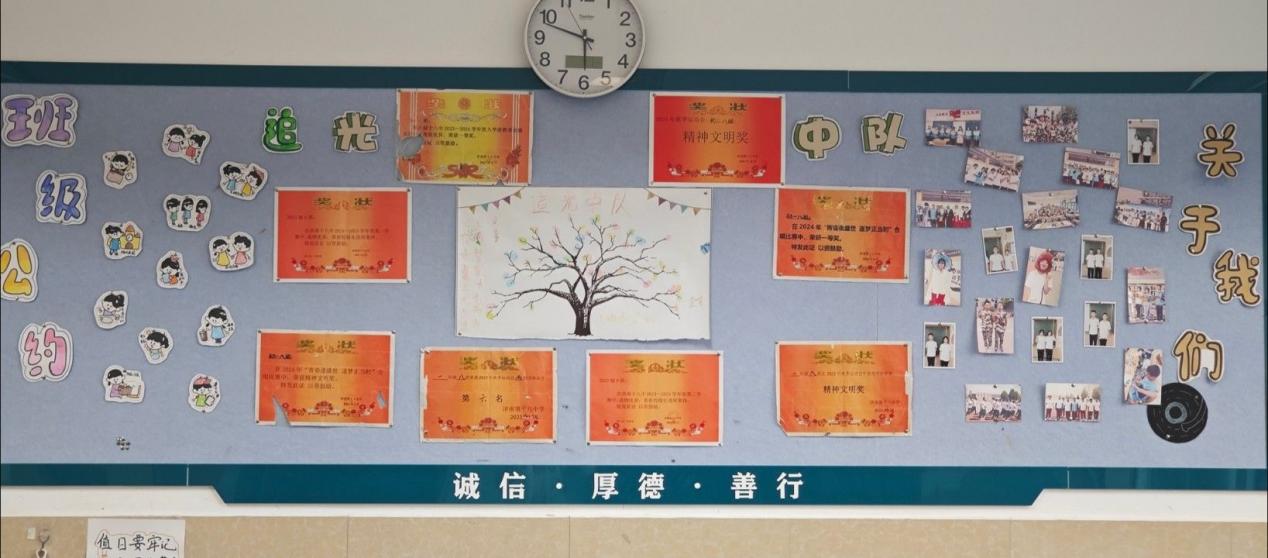 本次活动聚焦于班级环境的美化、班风与学风的建设以及文化创意的展示,将传统文化、学科知识和德育理念巧妙地融入教室墙面、黑板报、图书角等空间。不同班级根据自身特色,以“书香校园”为主题打造阅读角,以“科技创新”为主题展示学生的发明作品,或以“传统文化”为主题营造浓厚的文化氛围,充分展现了“环境育人”的德育理念。 在评比过程中,由班主任组成的评委团对各班级教室进行了实地考察。评委们从教室环境、文化内涵、创意布置、教育意义等多个角度进行综合评分。在评比中,评委们对各班级的创意和努力给予了高度评价。德育副校长蔡方华在点评时强调:“班级文化是校园文化的缩影,此次活动不仅美化了校园环境,更让‘班风正、学风浓’的理念深入人心。”