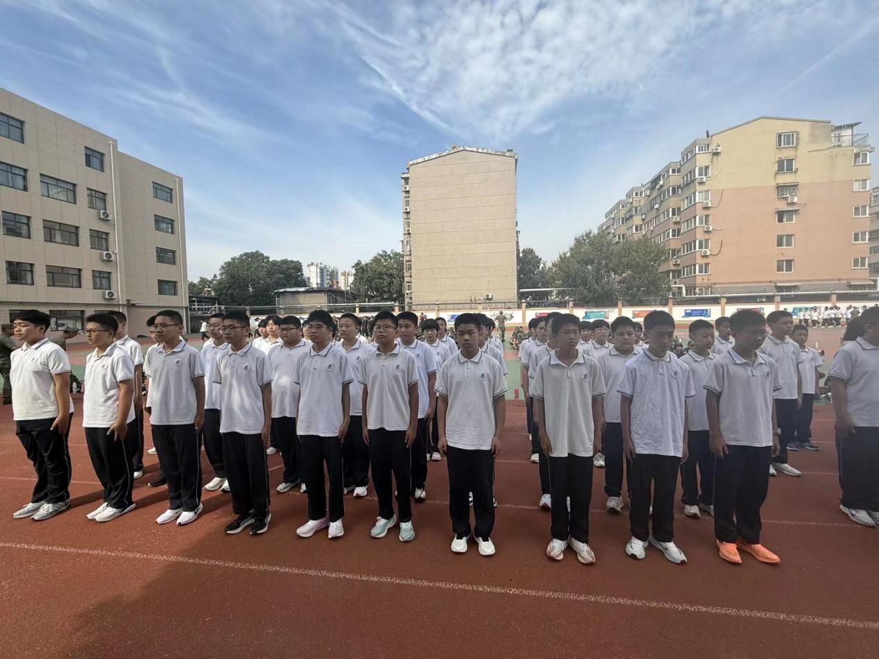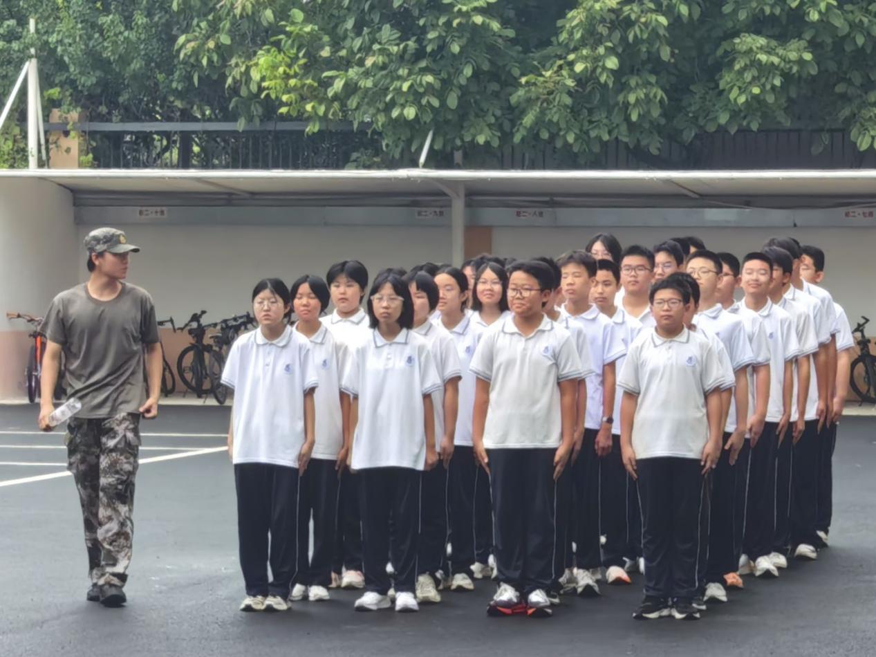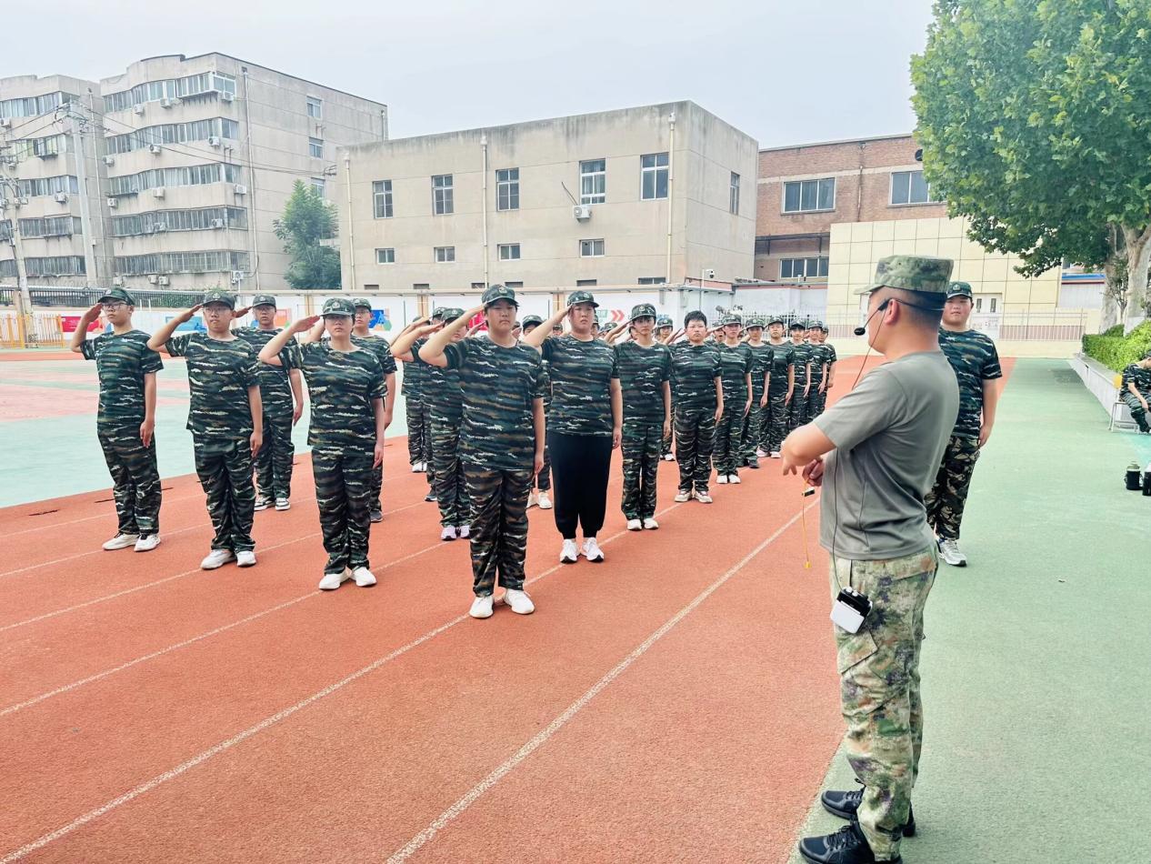 为全面贯彻落实济南市教育局《实施基础教育全学段衔接“泉引桥”工程的指导意见》,立足于立德树人根本任务,从根本上实现全环境育人目标,帮助学生减缓学段坡度,助力身心过渡,熟悉校园环境、适应新学期学习生活,促进我校教育高质量发展。学校于9月1日-9月5日,开展了为期五天的“泉引桥”入学适应性训练系列教育活动。 一、“强国复兴有我”之国防教育 学校巧妙将学生适应性训练与纪念中国人民抗日战争暨世界反法西斯战争胜利80周年相结合,为训练注入浓厚的家国情怀与国防文化底蕴。为锤炼学生体魄、磨砺坚强意志、增强组织纪律性、培养集体荣誉感,使其以昂扬姿态投入初中学习生活,学校组织学生观看抗战胜利80周年阅兵盛典,并同步开设国防教育系列课程,涵盖国防理论、国防精神、国防知识与国防技能等内容。通过适应性训练与国防教育,着力培养学生吃苦耐劳的品质,锻造坚韧不拔的意志。恰如苏轼所言:"古之立大事者,不惟有超世之才,亦必有坚忍不拔之志。" 适应性训练与国防教育期间,全体教官、班主任与同学迎秋风、战阴雨,历经烈日炙烤与风雨洗礼。无论是站军姿还是队列行进,纵然汗如雨下,同学们仍如磐石般岿然不动。他们以坚毅的目光、铿锵的步伐、昂扬的斗志,充分展现了当代中学生蓬勃奋发、锐意进取的精神风貌!
