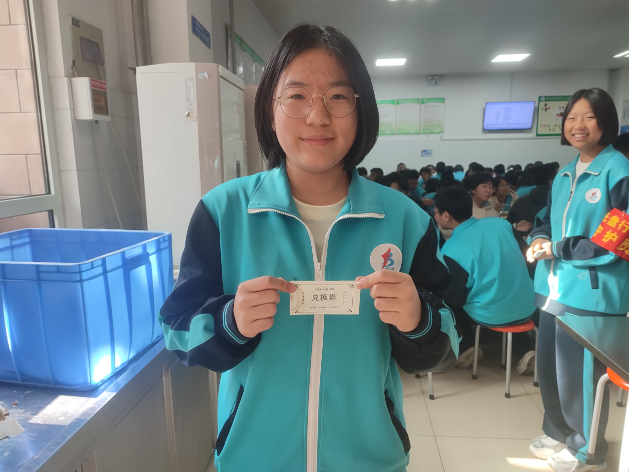 学校创新性地推出了“光盘赢券”活动,迅速吸引了学生的广泛参与。午餐时间,食堂餐盘回收处成为热闹的“节约战场”。学生值班员严阵以待,每当有同学端着空盘走来,便立即递上“光盘兑换券”,并赞许道:“你真棒,做到了光盘!”集齐一定数量兑换券后,学生可兑换“营养礼包”(牛奶、水果套餐)。这种实实在在的奖励机制极大地激发了学生的参与热情。据统计,活动开展仅一个月,餐厨垃圾平均重量便下降了约一半,成效显著。
