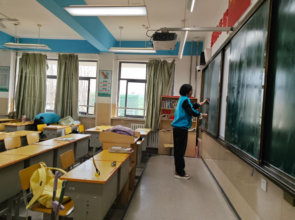 篇章二:服务社会·青春担当 初一(3)中队、初一(6)中队深入殷陈小区等多个社区,清扫楼道台阶,擦拭门窗玻璃,让蒙尘设施焕然一新。