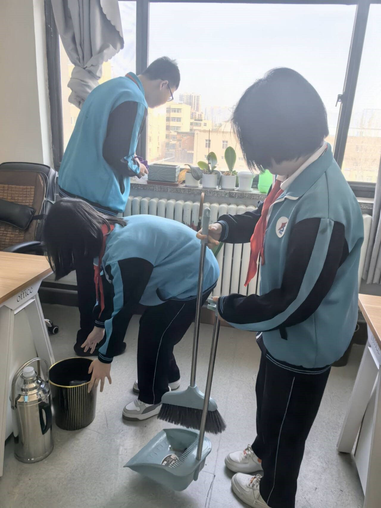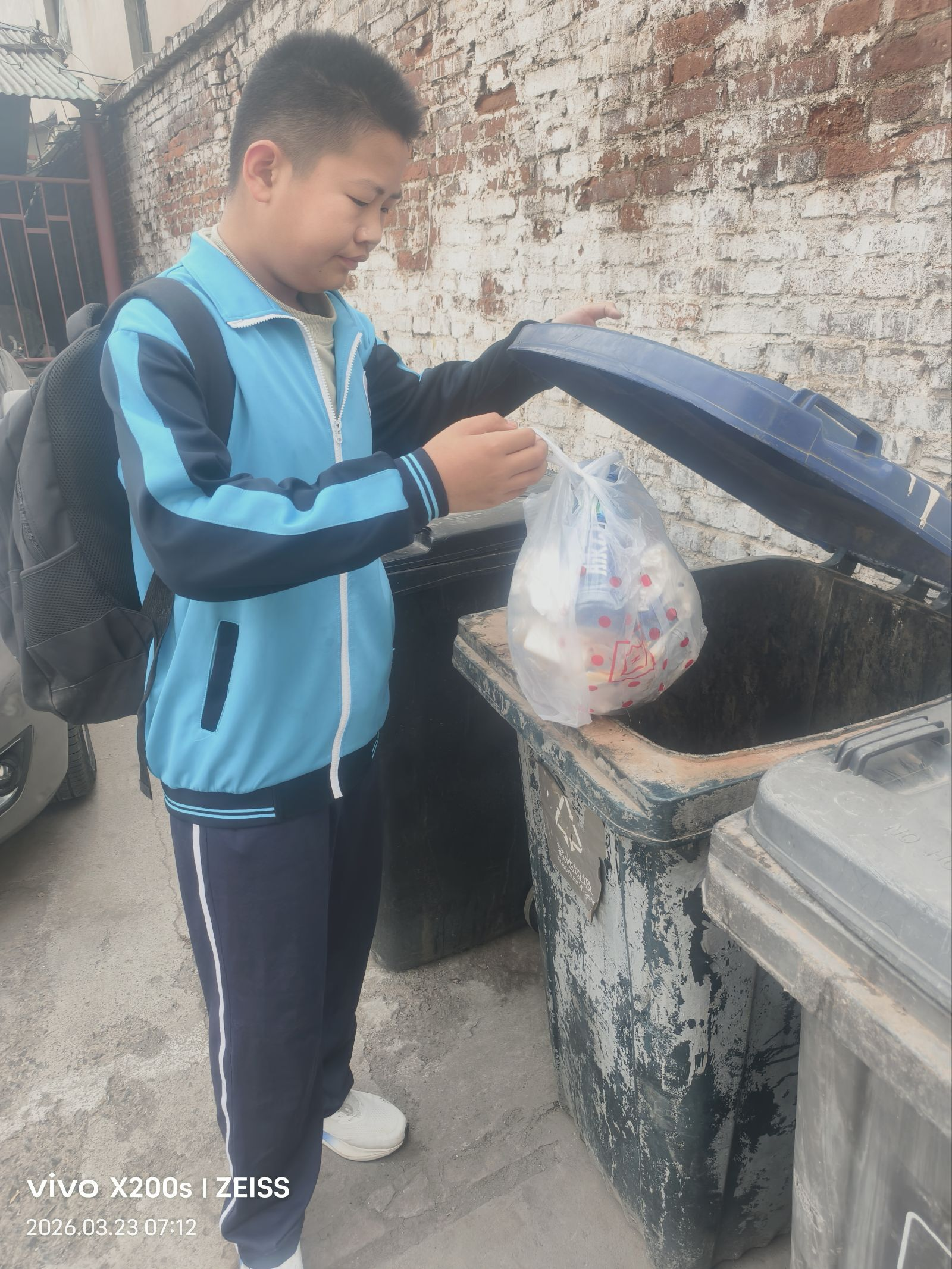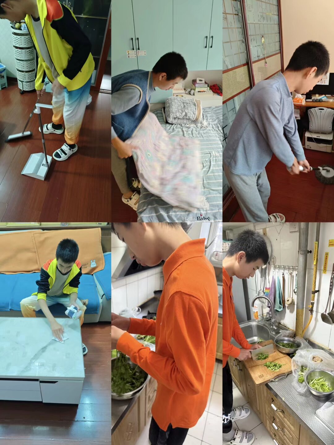 还有同学与环卫工人一同清扫路面,亲身体验“城市美容师”的辛劳。 篇章三:感恩于心·反哺于行 初一(3)中队、初一(6)中队将感恩融入行动。同学们在家中做力所能及的家务:洗碗、拖地、做饭、捶背……在劳动中体会长辈辛劳。他们还走进老人家中,陪聊天、听故事,用陪伴传递温暖,用小小善举温暖邻里。
