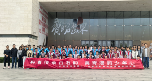 丹青传承白石韵 美育浸润少年心 ——济南十八中、济南一中联合对口小学开展泉引桥美育衔接实践活动 为落实“五育并举”要求,扎实推进泉引桥中小学衔接育人工程,落实市教育局“健康校园十大行动”美育工作部署,创新开展美育主题行走的思政课,近日,济南十八中联合济南一中,携手王舍人实验小学、王舍人中心小学、张马屯小学、宿家张马小学、大辛庄小学的师生共同走进山东省美术馆,开展“赏白石真迹,悟艺术真谛”主题美育实践活动。活动以美育润心、以思政铸魂,打通小初高学段育人衔接,让学生近距离感受传统艺术魅力,夯实美育思政育人根基。