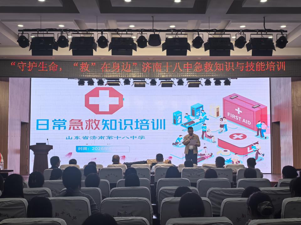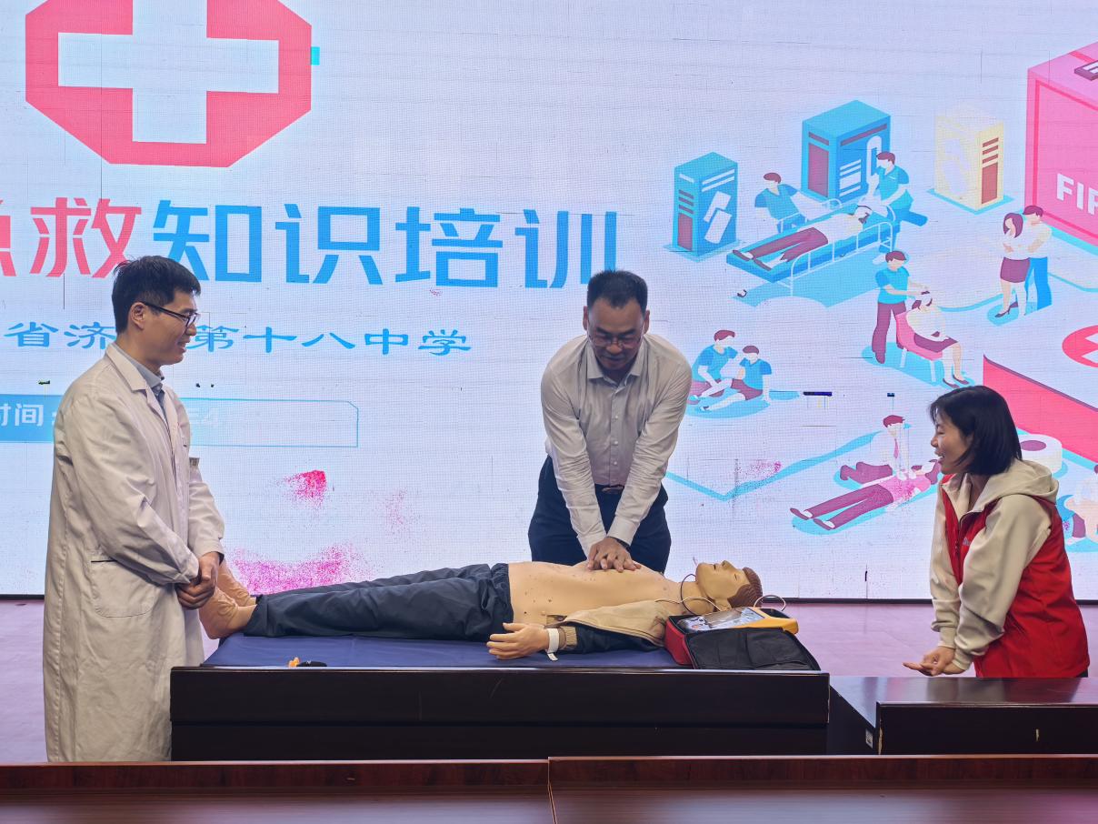 为牢固树立“健康第一”的教育理念,普及校园应急救护知识,增强师生安全防范意识与自救互救能力,山东省济南第十八中学与济南市第三人民医院 积极共建教联体,于2026年4月15日下午联合举办了以“守护生命,‘救’在身边”为主题的急救知识与技能培训活动。