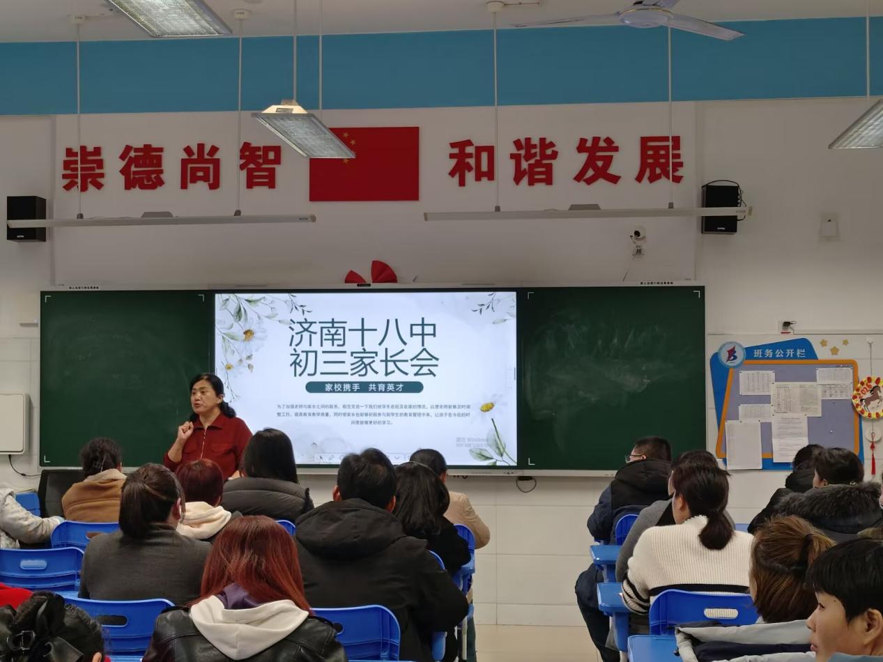 济南十八中召开新学期家长会 聚焦“健康第一”与中考新政 为深入贯彻落实教育部“健康第一”的教育理念,同时帮助家长准确把握中考改革方向,加强家校协同育人,3月20日下午,济南十八中召开新学期家长会,学校围绕开学以来班级情况、学生体质健康状况以及中考新政策解读等议题,与家长进行深入交流。