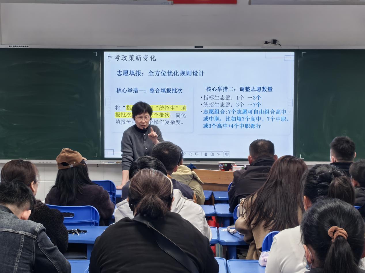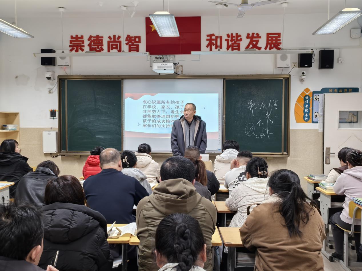 随后,教学管理部王晓方主任通过校园广播系统,为全体家长带来了一场关于2026年中考新政策的专题解读;针对不同年级学生的特点,给出了具体的学业规划建议,帮助家长提前布局,从容应对中考变化。家长们认真聆听,对新政策有了更清晰的认识。