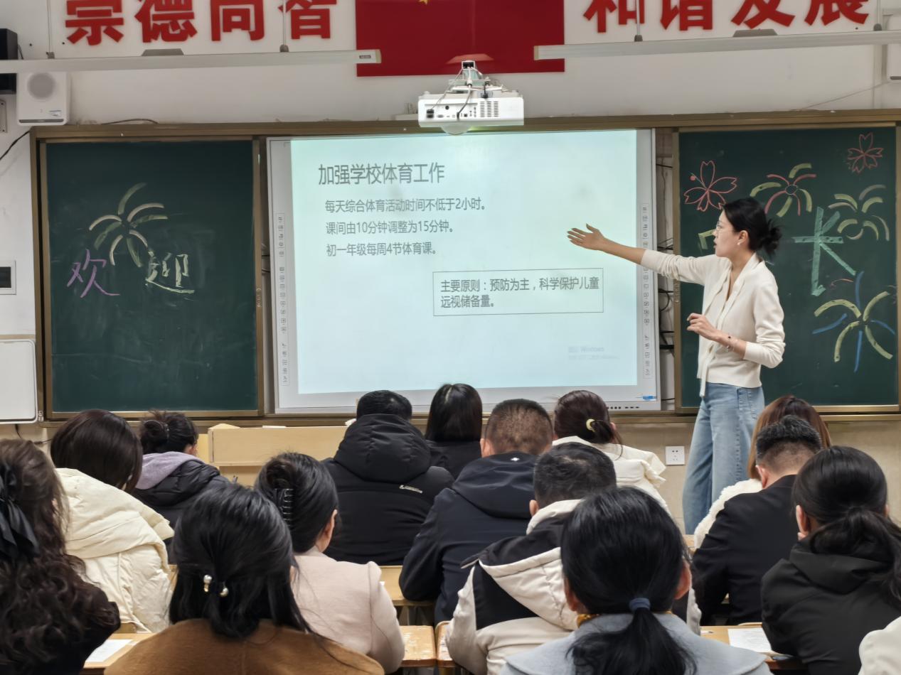家长会围绕“健康第一”主题,系统传达了教育部关于强化学校体育、促进学生身心健康的相关政策精神,强调了“健康第一”理念在育人过程中的核心地位。学校将严格落实每天体育锻炼时长要求,优化体育课程与大课间活动,让学生做到“身上有汗、眼里有光,脚下有力”。
