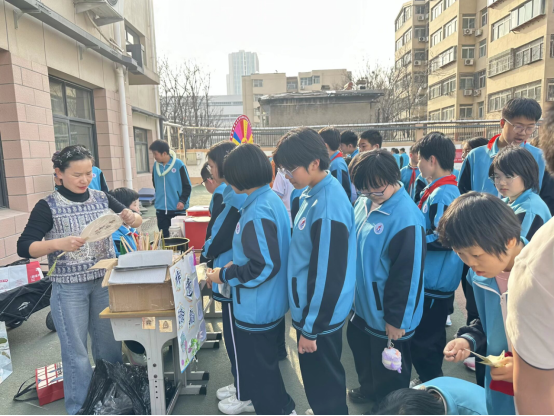 三、义卖现场,爱心与创意齐飞 随着蔡校长一声“活动开始”,操场瞬间沸腾起来。各班精心布置的“爱心小铺”各具特色,欢笑声此起彼伏。书籍、文具、手工艺品、文创产品……琳琅满目的商品吸引了众多师生驻足。