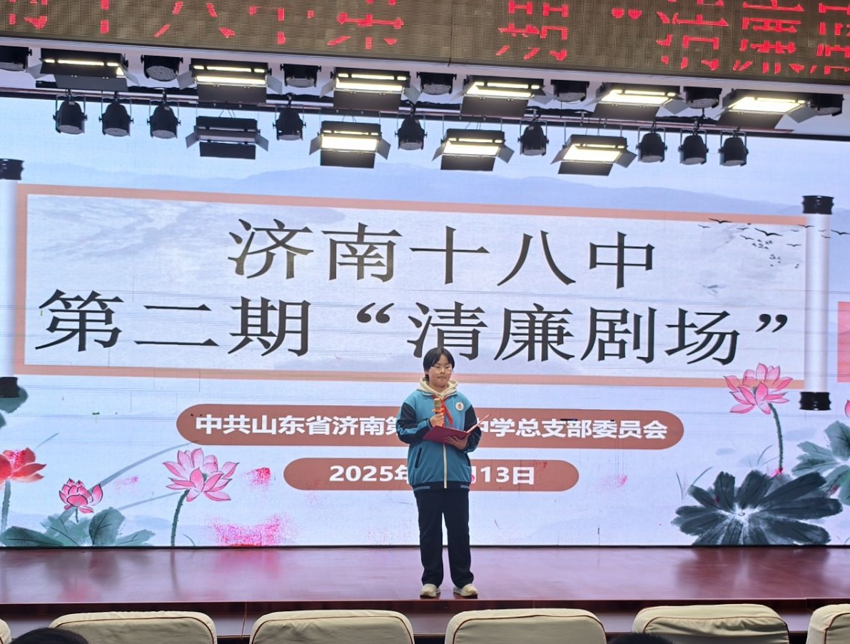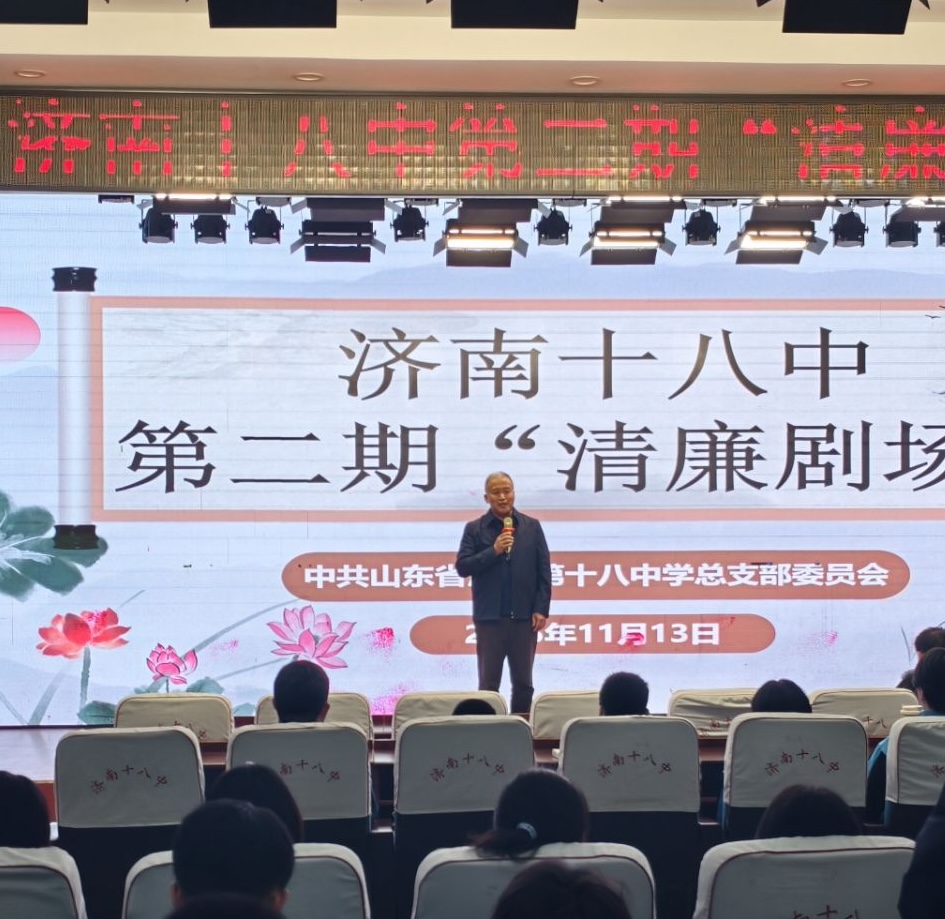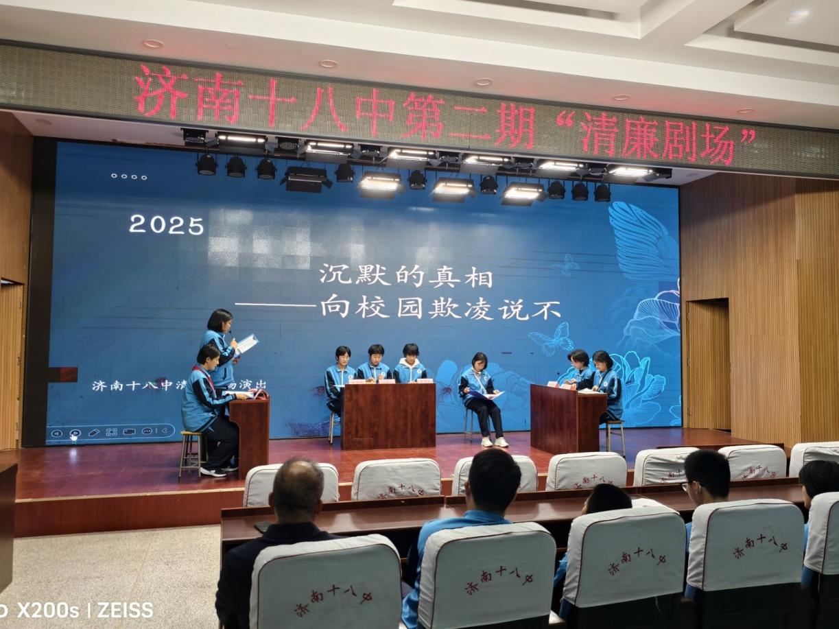 清风沐校园,廉洁润心田 ——济南十八中第二期“清廉剧场”圆满落幕 11月13日下午,济南十八中养正楼五楼多功能厅内掌声阵阵,第二期“清廉剧场”展演活动在此隆重举行。本次活动由学校党总支统筹策划,语文、历史、道德与法治教研组联合指导,初一初二学生自编自演,给全体师生呈现了一堂别开生面的廉洁教育课。