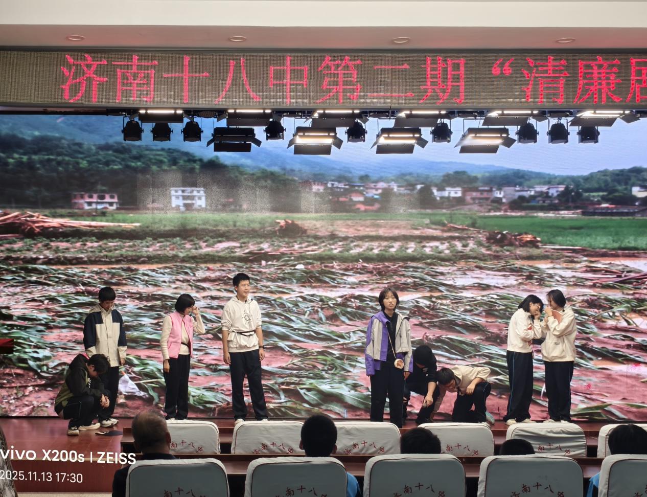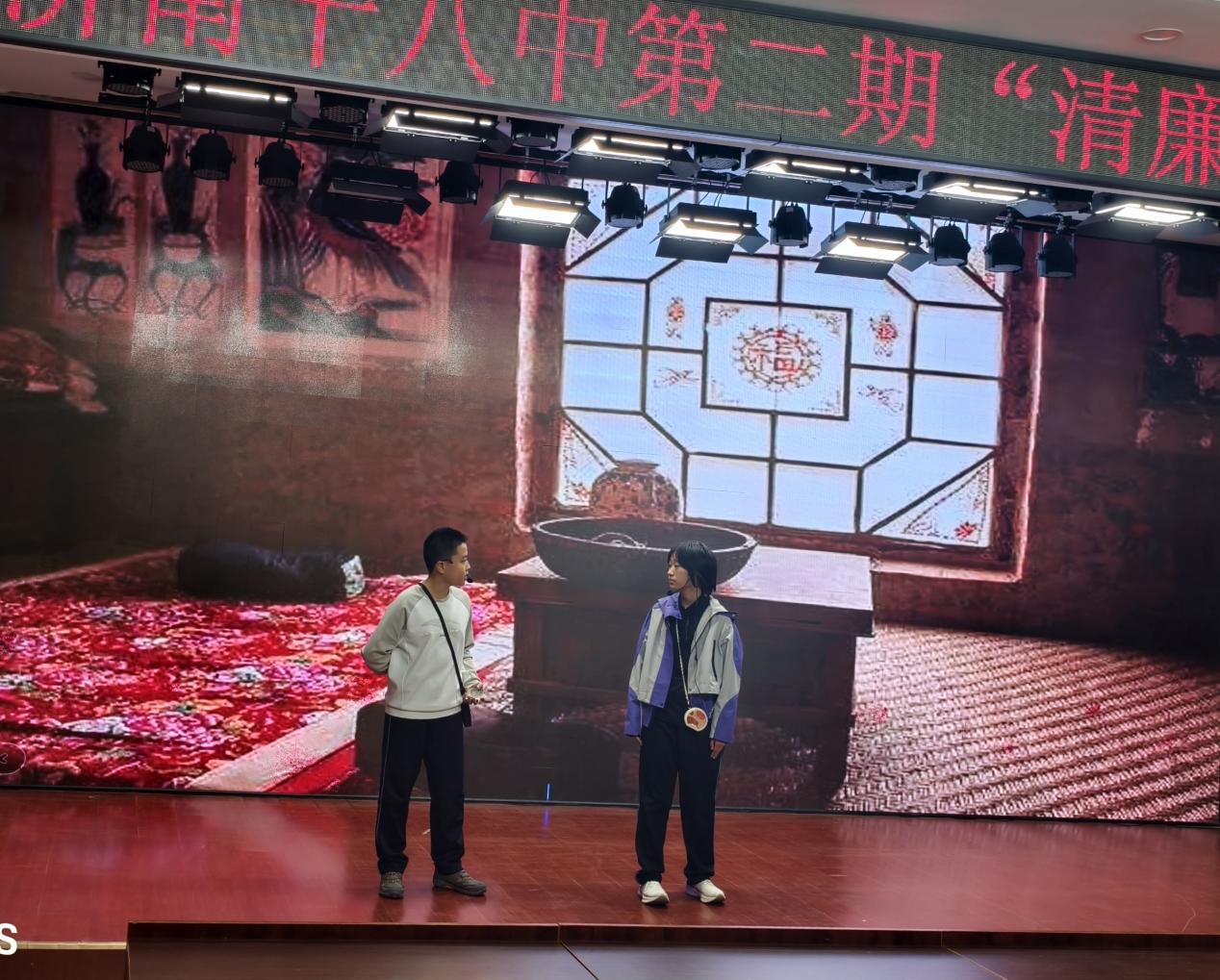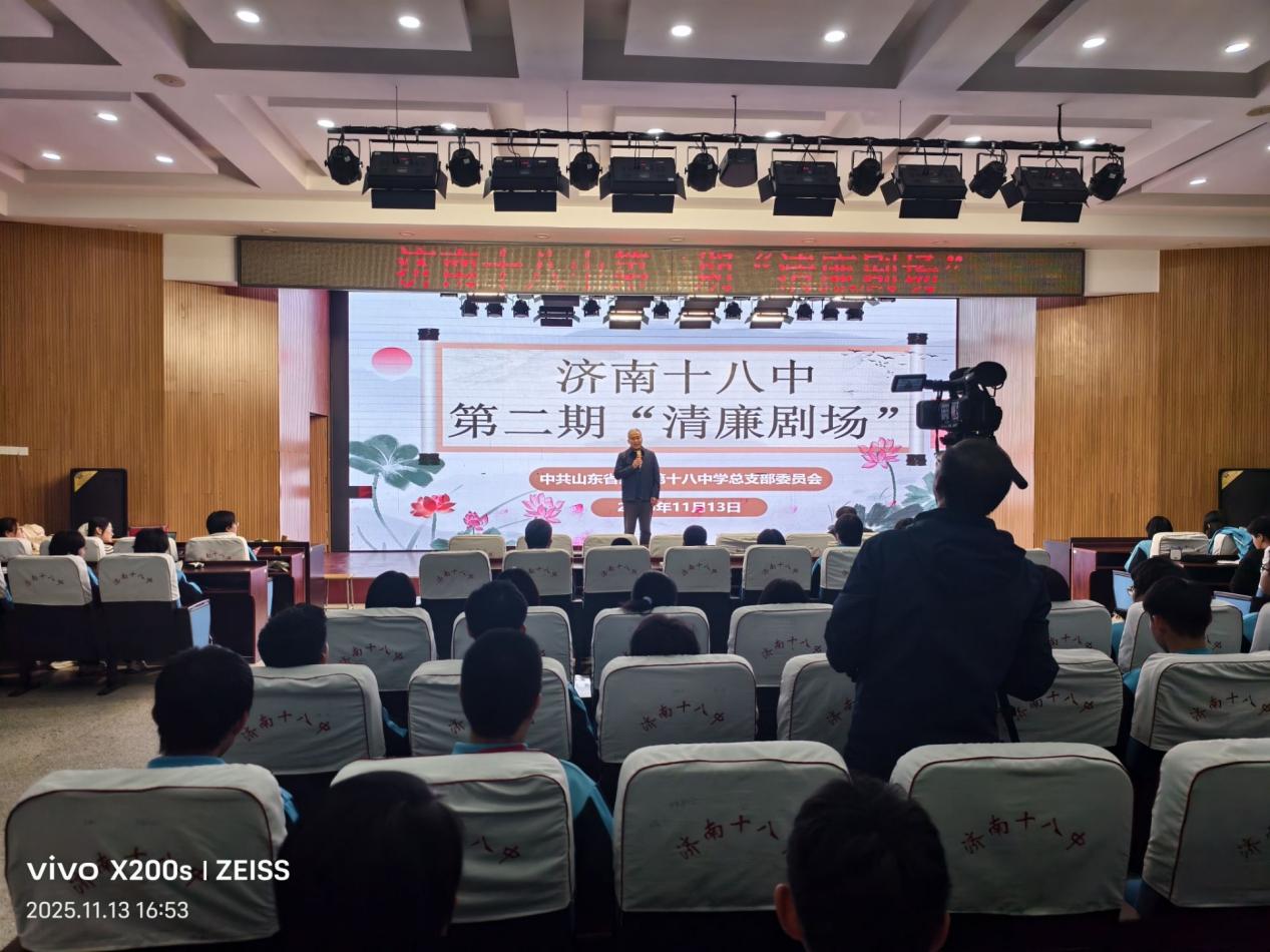 清风沐校园,廉洁润心田 ——济南十八中第二期“清廉剧场”圆满落幕 11月13日下午,济南十八中养正楼五楼多功能厅内掌声阵阵,第二期“清廉剧场”展演活动在此隆重举行。本次活动由学校党总支统筹策划,语文、历史、道德与法治教研组联合指导,初一初二学生自编自演,给全体师生呈现了一堂别开生面的廉洁教育课。