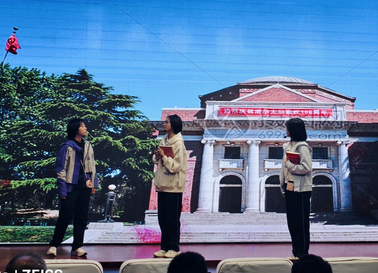 历史组《海棠笺》情景剧 “公车是组织上配给我工作用的,不是我们家的私有财产。”舞台上,周恩来总理温和而坚定地拒绝侄女使用公车的请求,每一个细节都彰显着革命前辈的廉洁风范。历史组同学们通过四幕感人至深的情景剧,将周总理严于律己、公私分明、艰苦奋斗的形象刻画得入木三分。当演员们齐声朗诵“严于律己、公私分明、艰苦奋斗、鞠躬尽瘁”时,现场响起了持久而热烈的掌声。