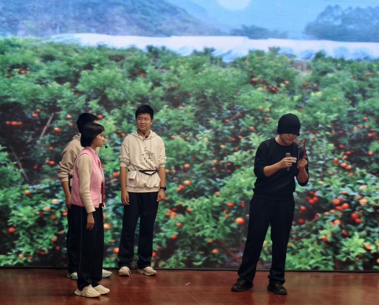 语文组《黄文秀:信仰与使命》 作为本次展演的压轴剧目,由语文组同学共同演绎的《黄文秀:信仰与使命》将整场活动推向高潮。从校园到农村,从学子到驻村第一书记,同学们用真挚的表演,将黄文秀放弃留京机会、毅然返乡扶贫的动人故事娓娓道来。