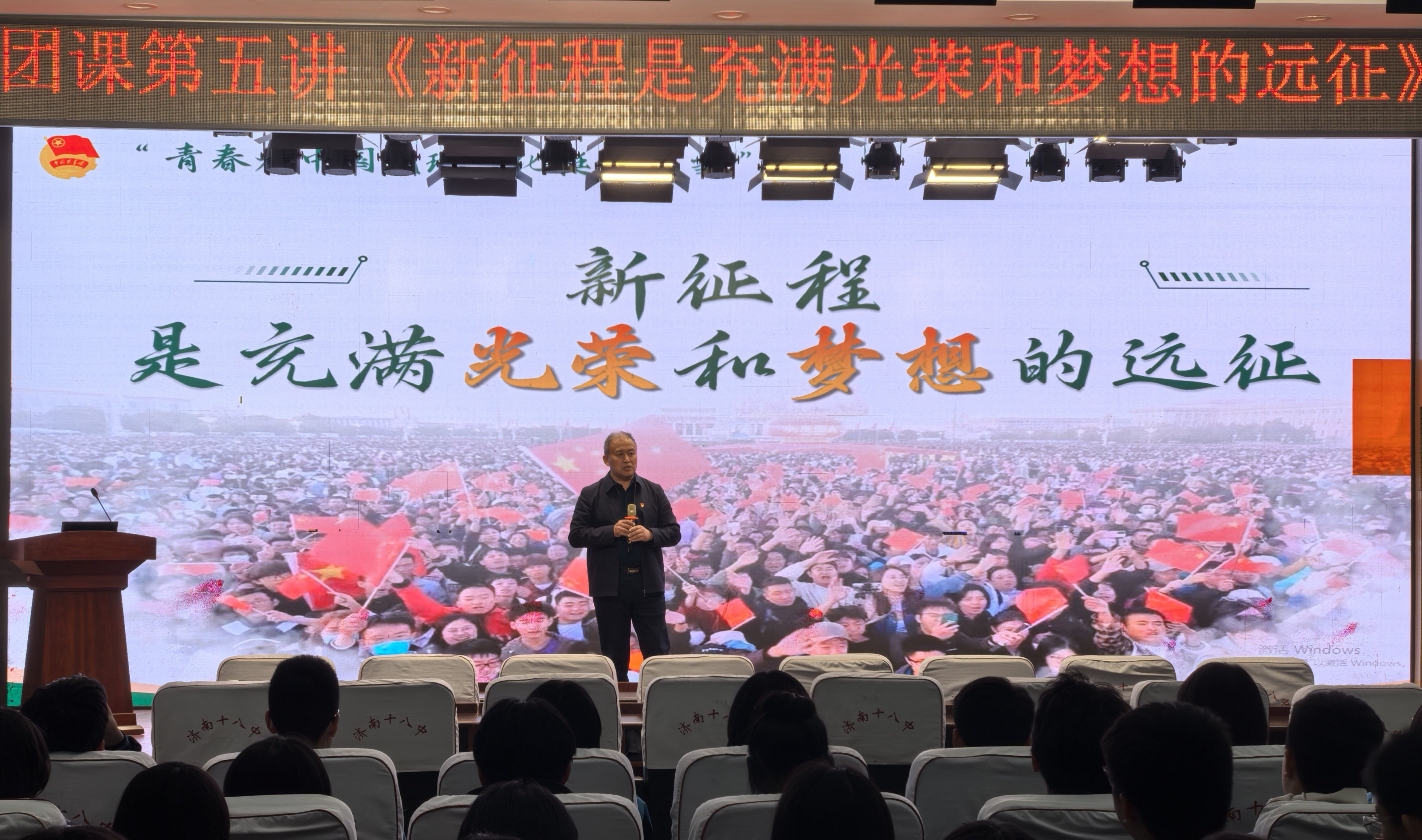 三、担当·从“小我修身”到“大我挺膺” “身处伟大时代,我们当何为?”权书记将话题引向每位学员。他强调,个人理想唯有与国家民族的前途命运紧密结合,才能获得磅礴的生命力。他寄语同学们:一要会学习,不能“死读书、读死书”,要勤于思考、勇于实践,将知识转化为能力;二要尽责任,从身边小事做起,乐于为集体服务,“黑板没人擦,你去擦一擦,累不着”,在点滴奉献中培养社会担当;三要拓视野,关注时代发展,积极参与社会实践,在实践中理解国情,增长才干。他鼓励大家,要将“小我”的成长融入“以中国式现代化全面推进中华民族伟大复兴”的“大我”征程中,敢于有梦、勇于追梦、勤于圆梦,在充满光荣和梦想的新远征上,留下坚实的青春足迹。